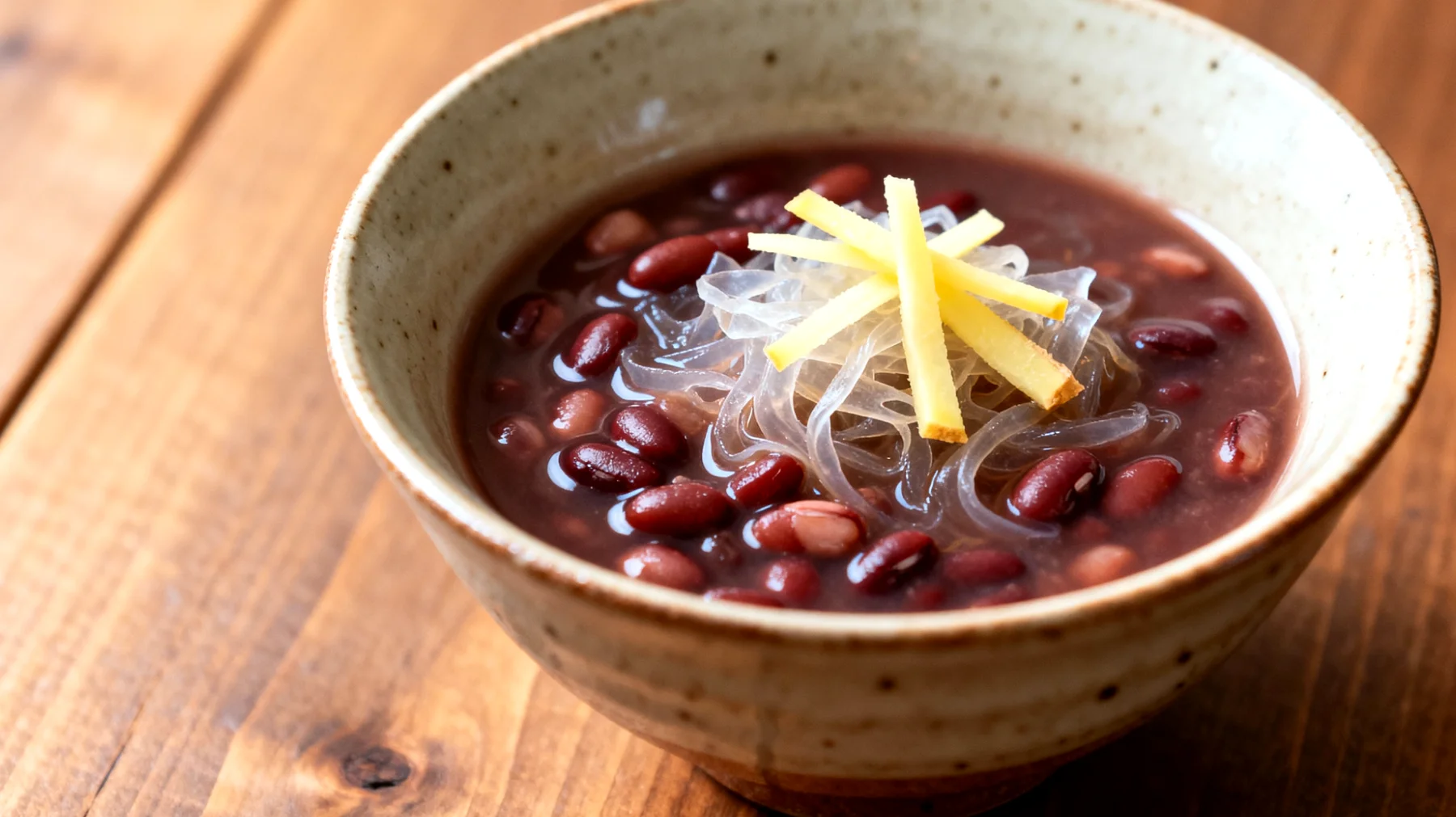 La nota piccante e agrumata dello zenzero controbilancia perfettamente la dolcezza naturale degli azuki, creando un equilibrio gustativo che rende questa zuppa tutt’altro che monotona.